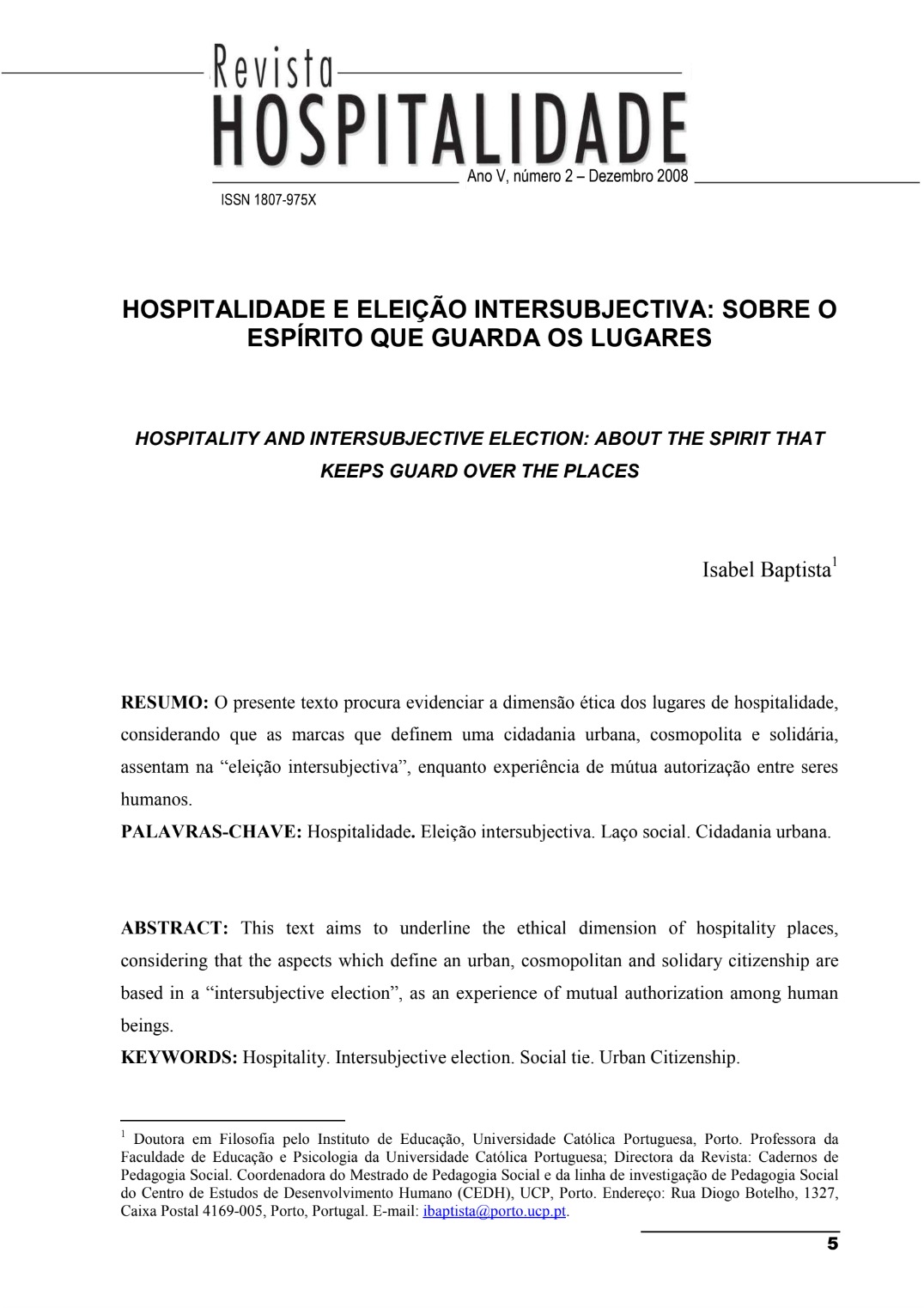 PARA UMA FUNDAMENTAÇÃO ANTROPOLÓGICA E ÉTICA DA EDUCAÇÃO: A ESCOLA COMO LUGAR DE HOSPITALIDADE